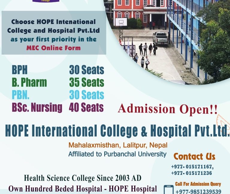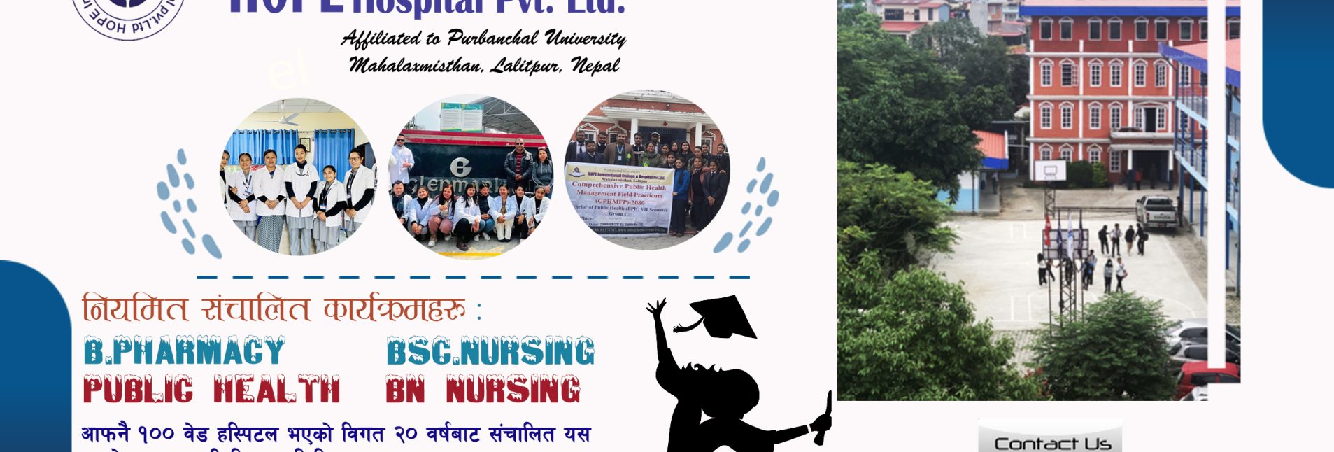 HOPE International College (HIC) was established in 2003 and is located in a building complex at Tekhebewal,Mahalaxmistan, Lalitpur, in the Kathmandu Valley. HOPE International College is registered with the Company Registrar’s Office in Kathmandu, in accordance with Nepal’s Company Act 2063 B.S. HIC aims to develop modern, resourceful, and relevant education in the health sciences field, by providing a favorable environment in order to optimize the learning potential of all students. As the world moves with its new challenges and unique demands, the rapid pace of globalization increases the demand of its dedicated nurses, public health professionals, and other health care experts, who possesses the required skill set and commitment, using international standards. Our institution provides a learning environment in which students learn both theoretically and practically. Recently, HOPE International College has partnered with Health and Development Associates (HDA), to provide perfo....